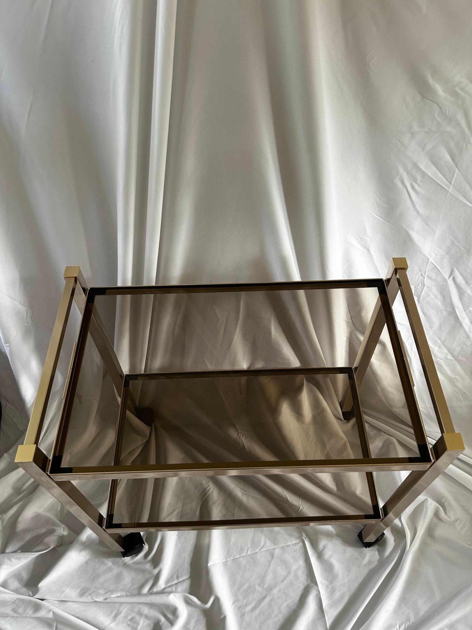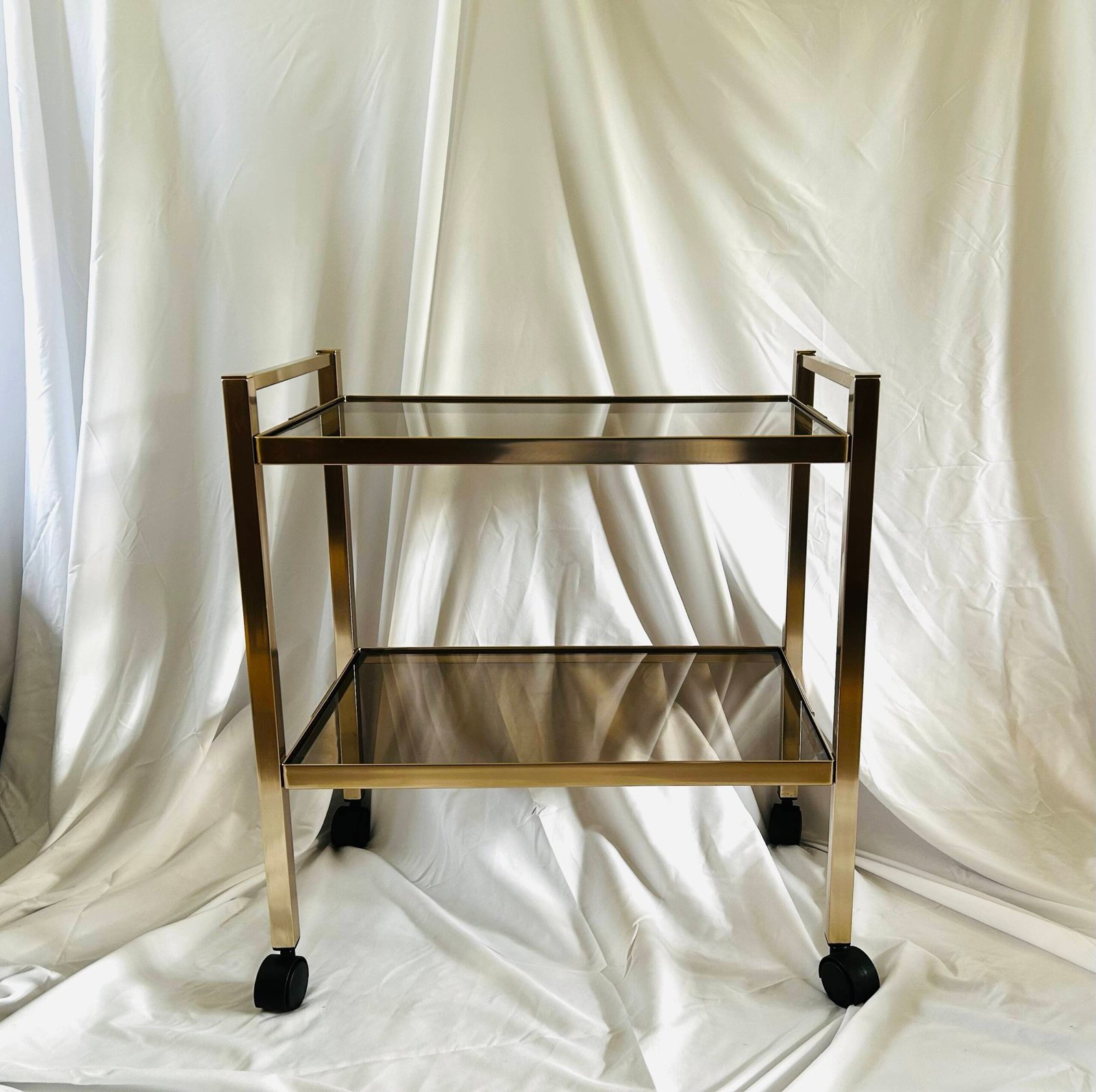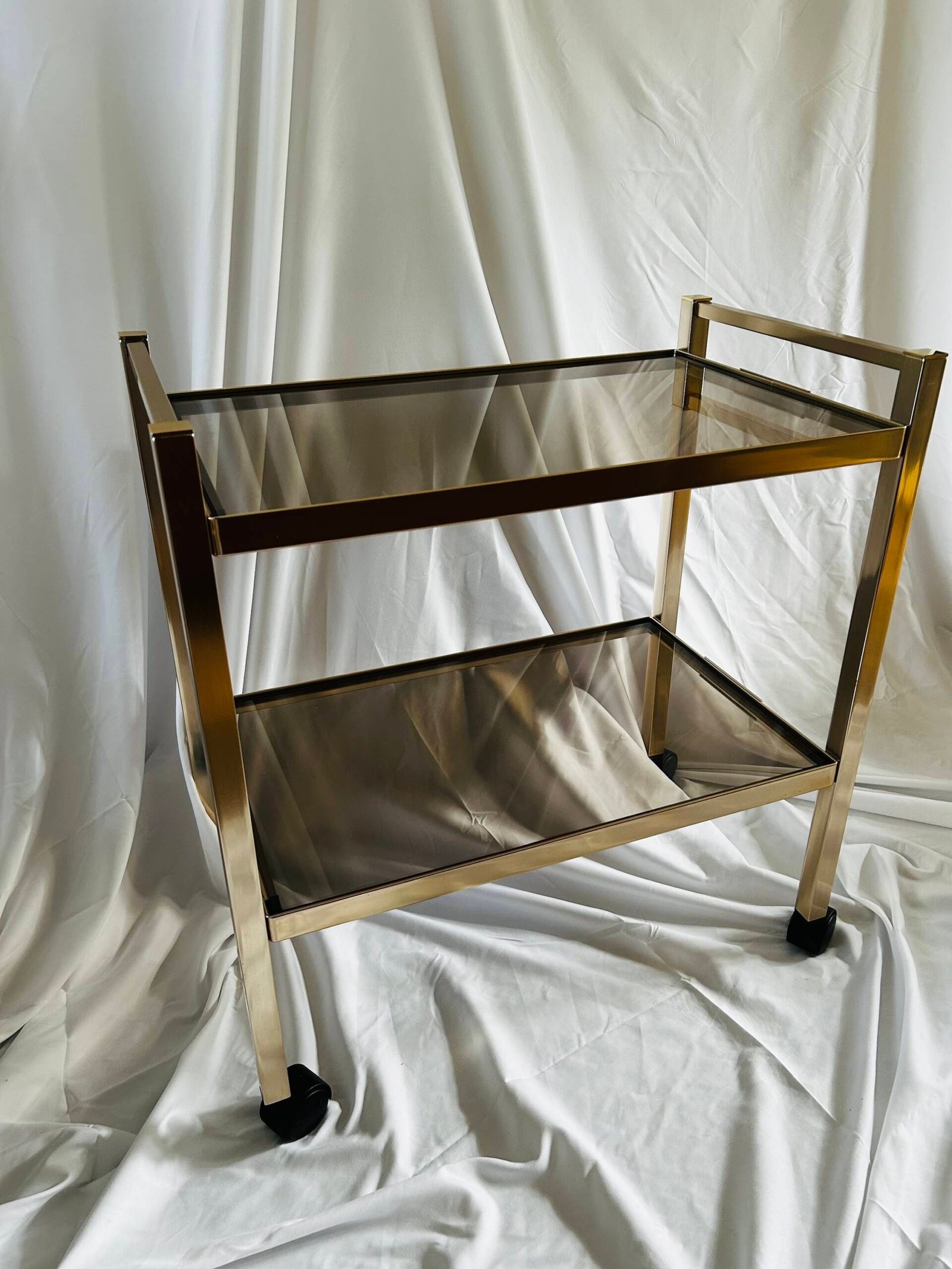 1970s Smoked Glass Amber Two Tier Drinks Trolley.