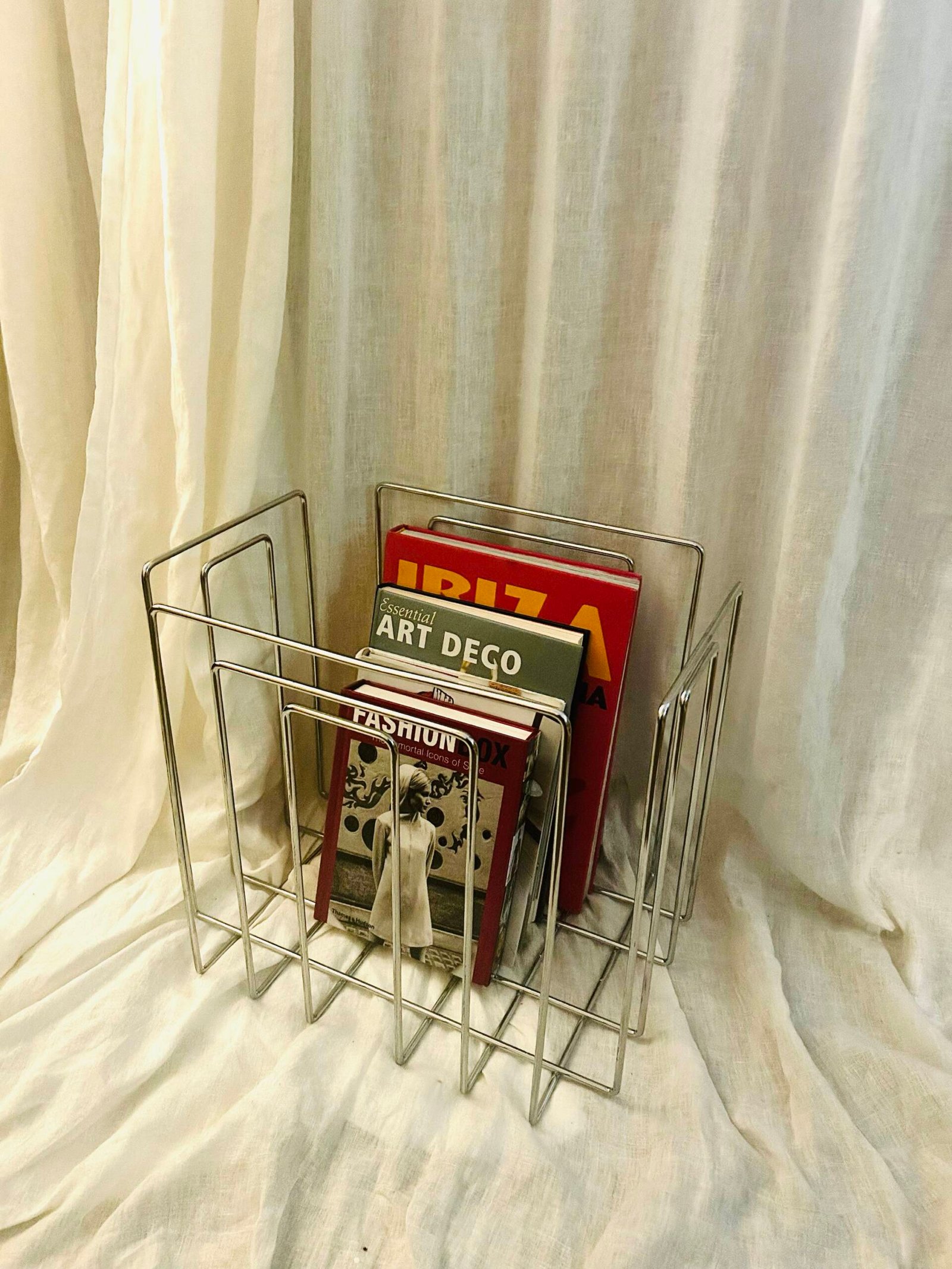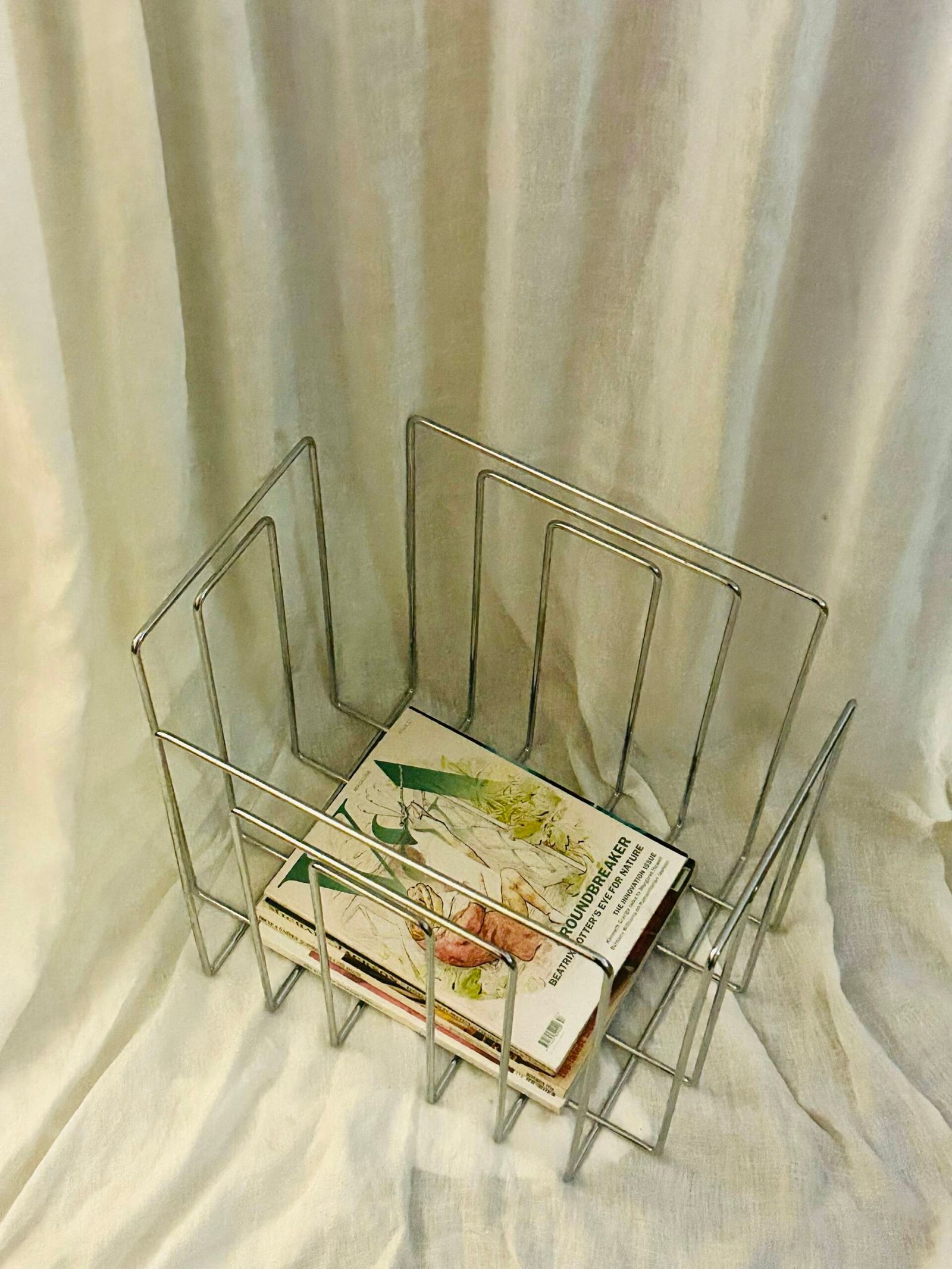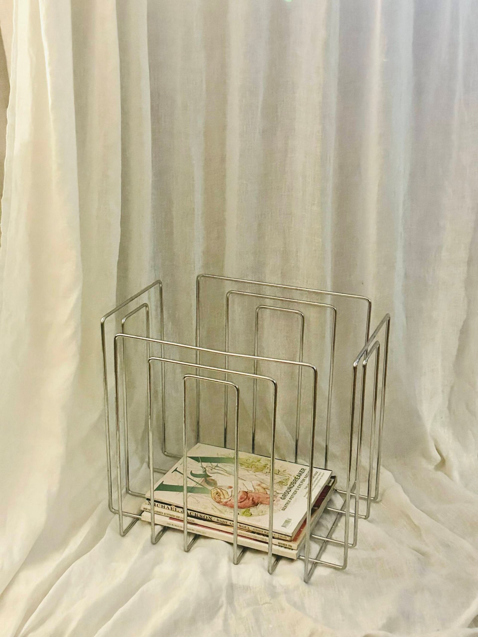 1989 Chrome-Plated Wireframe Magazine Holder By Willi Glaeser for TMP