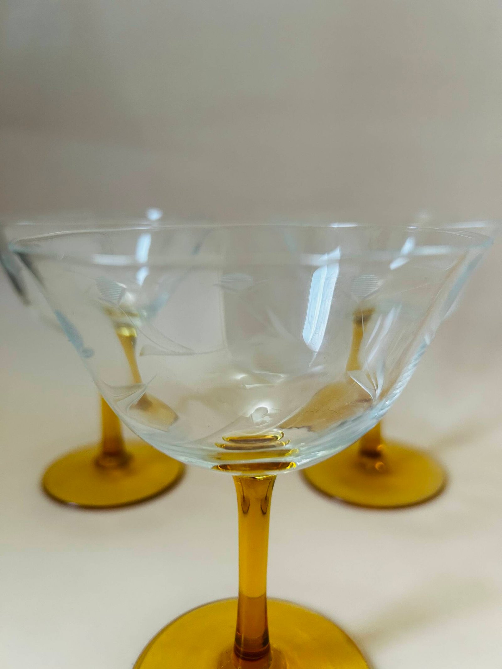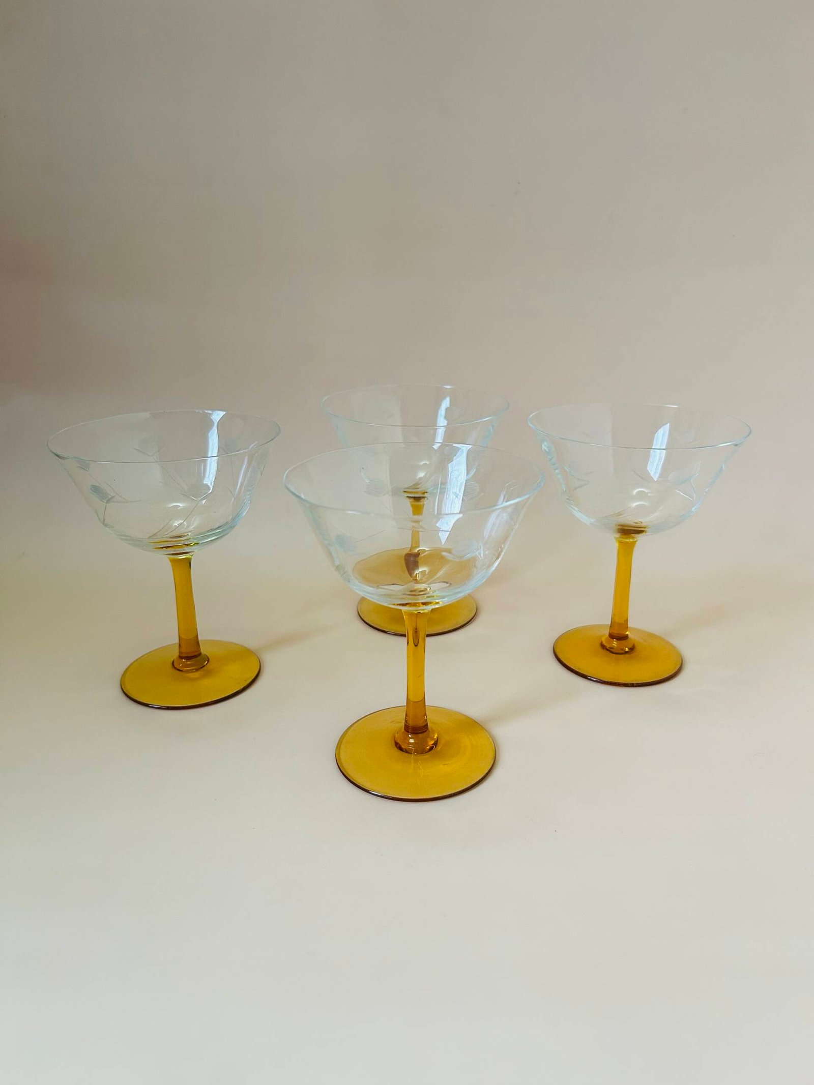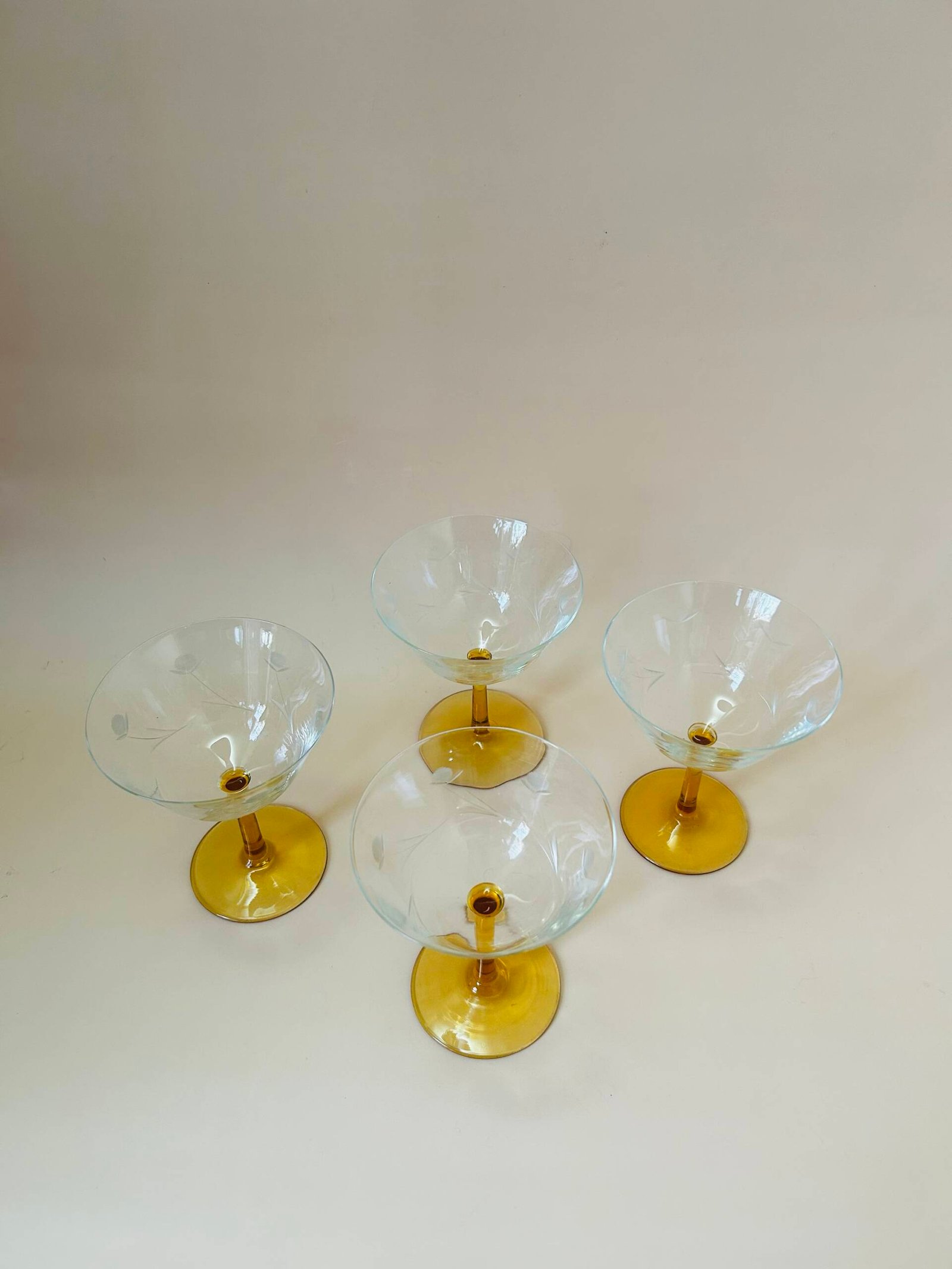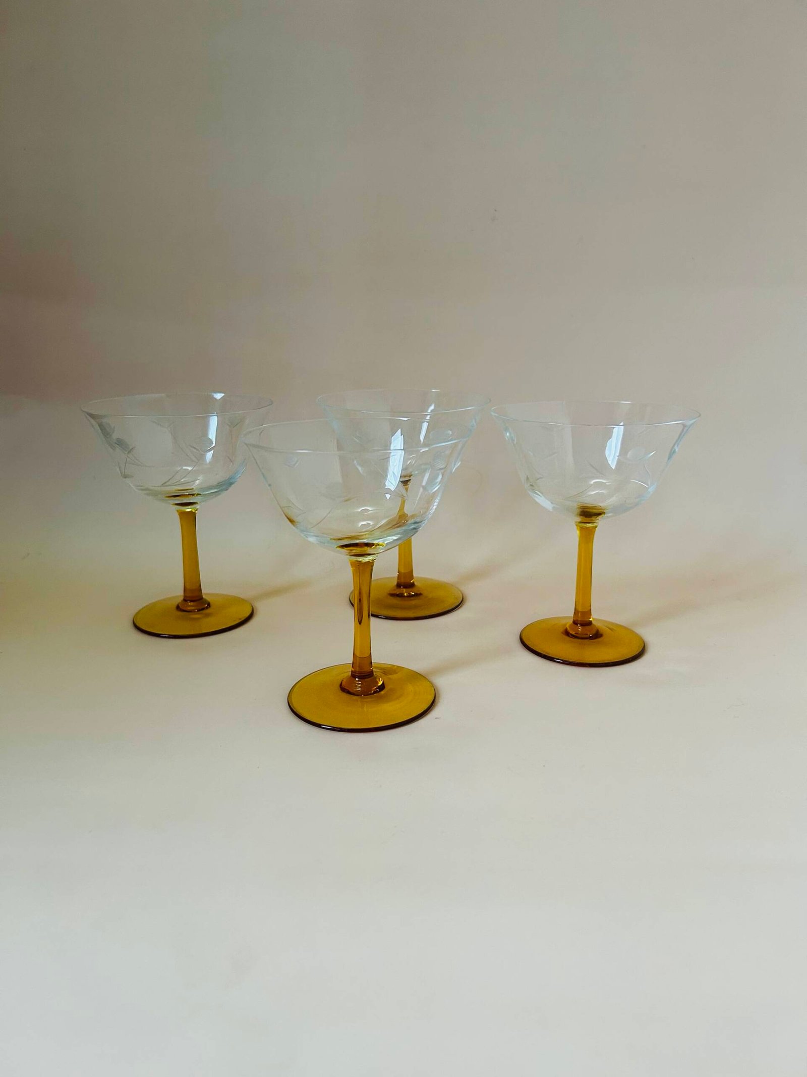 Vintage Amber Bowl Champagne Coupe (Set of 4)