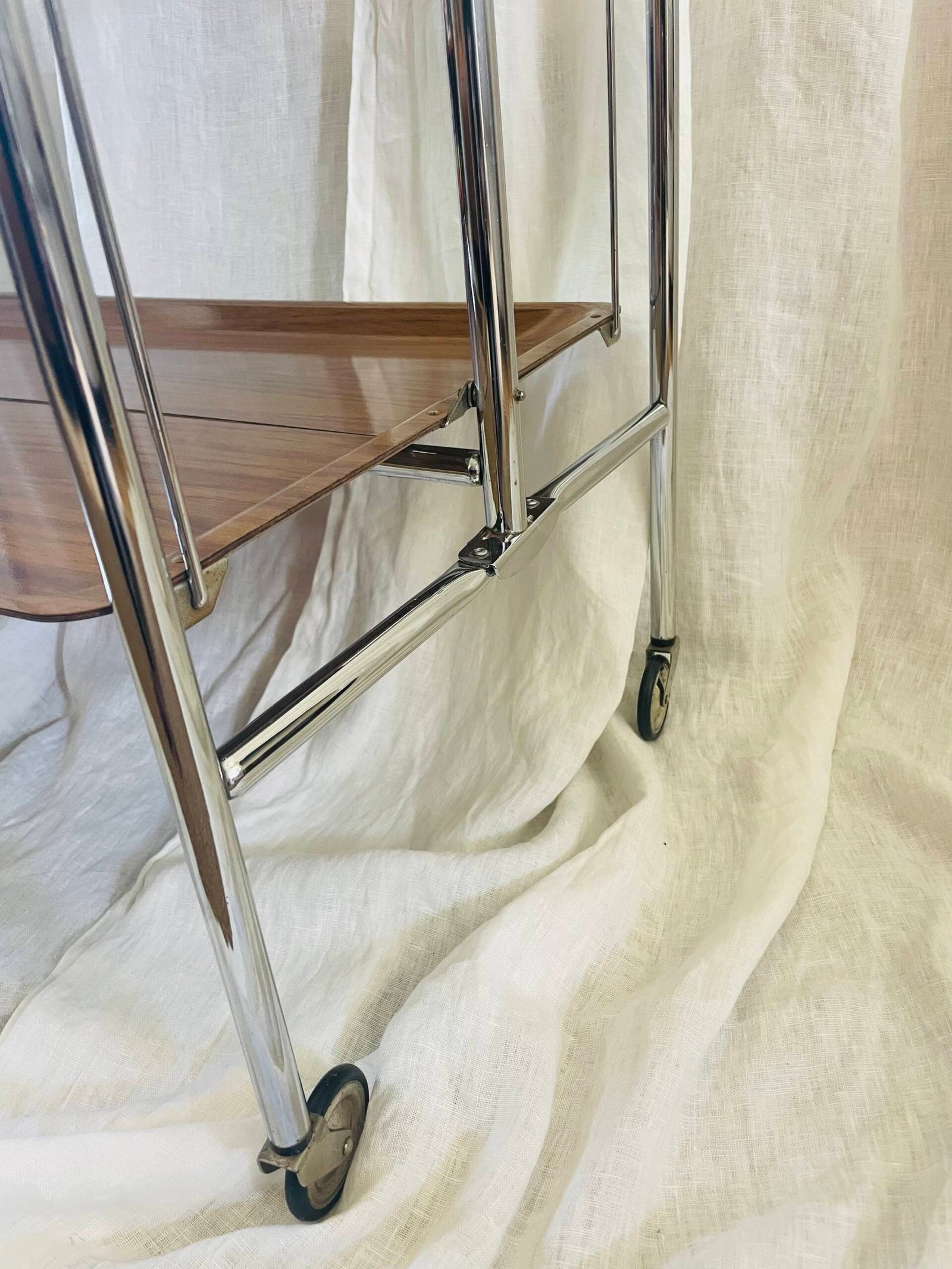 Be the first to review “Mid-Century Modern Chrome & Wood Veneer Two-tier Serving Cart, Made In Germany ๐Ÿ‡ฉ๐Ÿ‡ช”
