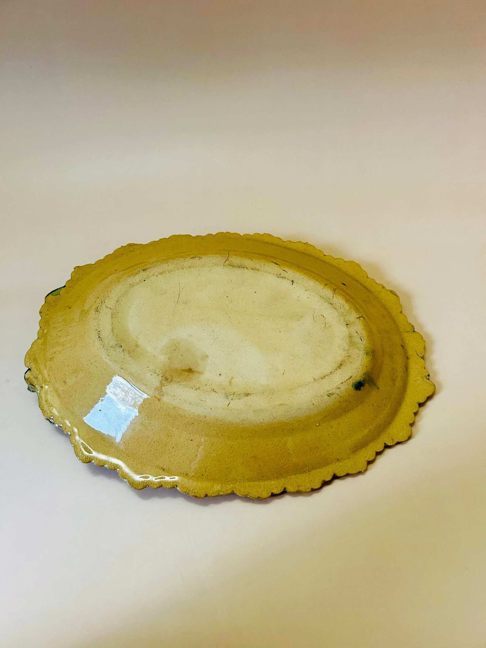 Made from ceramic, this vibrant platter features a glazed finish in shades of yellow, green, and blue.