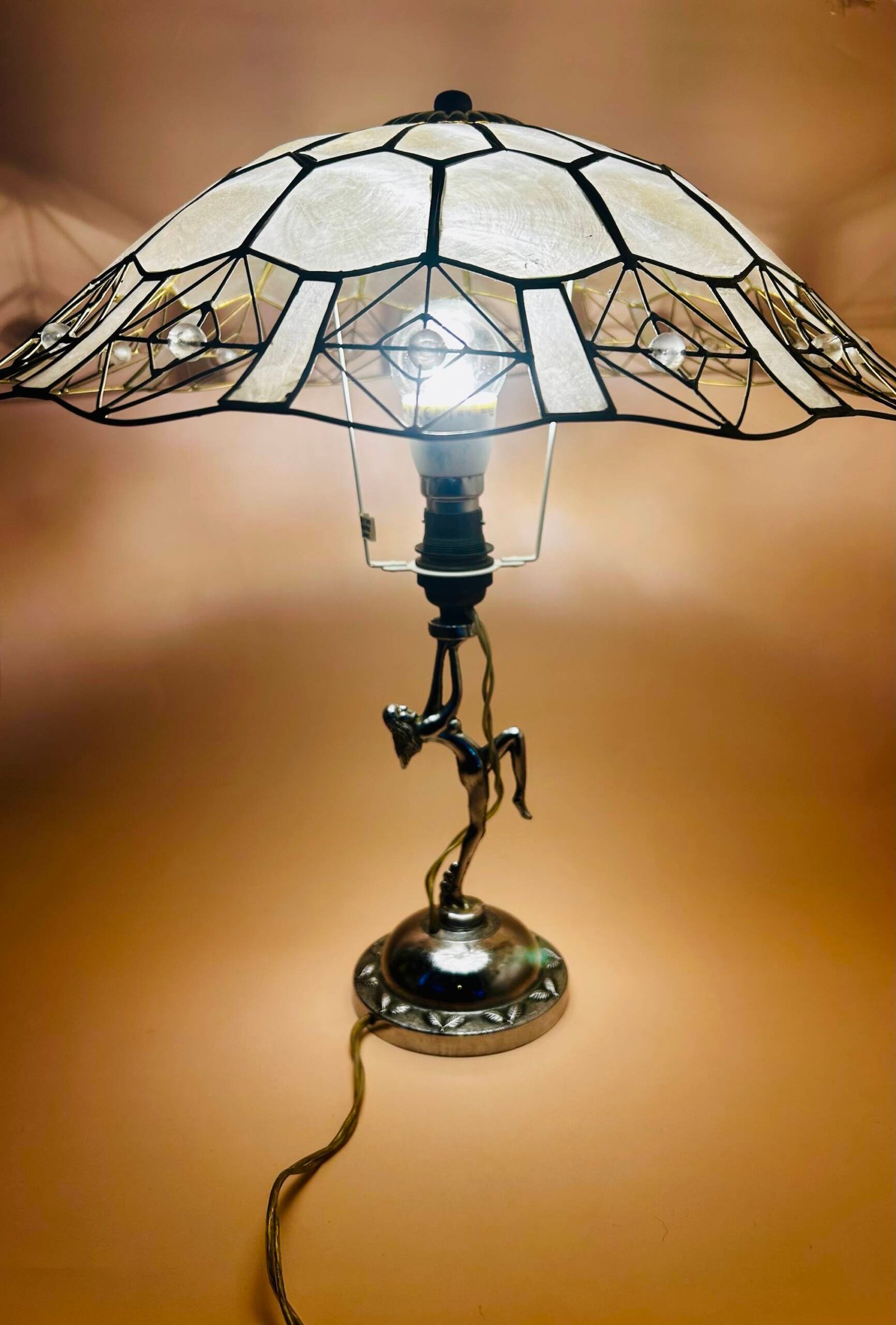 We have added a 1960s capiz shell lampshade which plays homage to the art deco era.