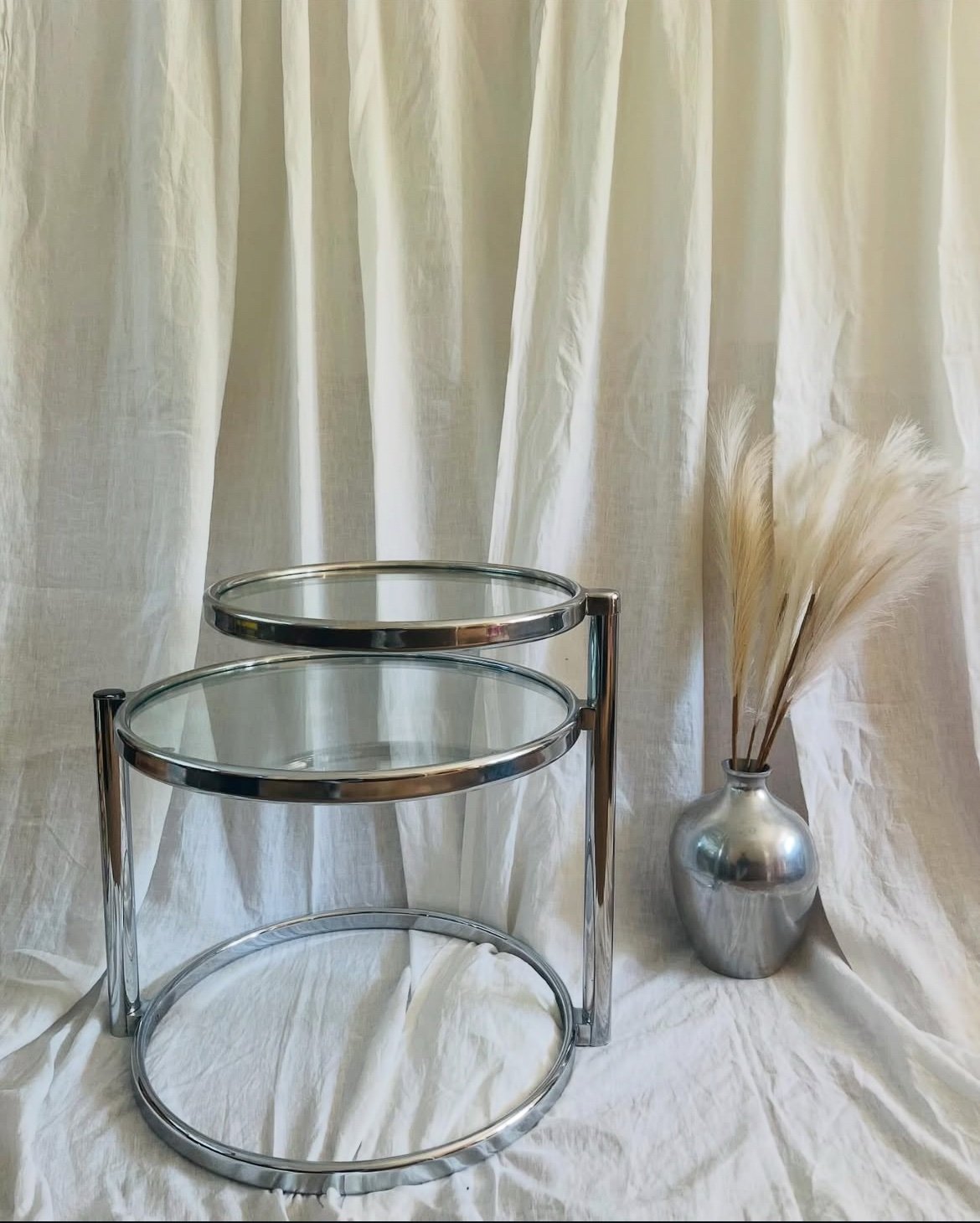 Be the first to review “Vintage Chrome & Glass Two-Tier Side Table”