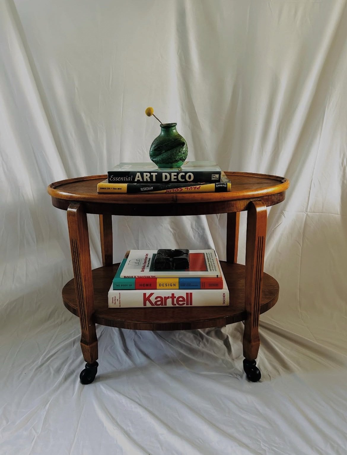 Be the first to review “Vintage Oval Oak Side Table On Wheels”