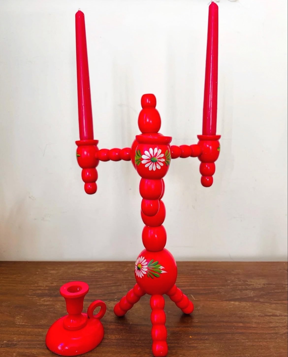 Holder and single small wood candle holder.